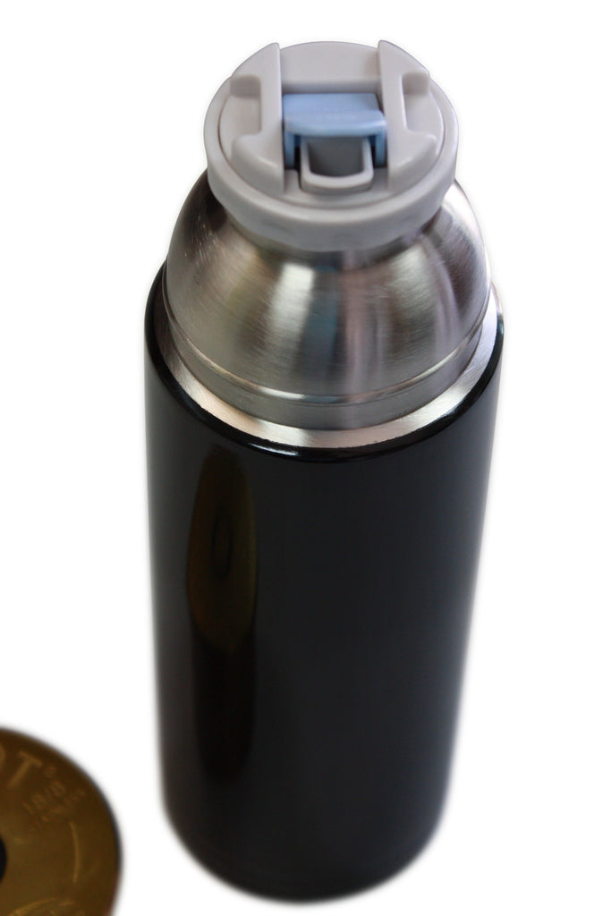 • Insulated cap. One touch stopper. Wide base cup is tip proof. Color: Black or Red 25 oz. 3-cup capacity!