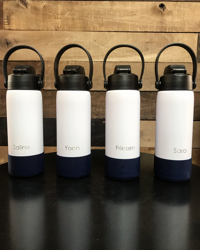 Bottles are laser etched. All Logos, Names & Images will be etched onto the bottle paint and will reflect stainless steel color underneath. Variations of color in the images are due to photography.